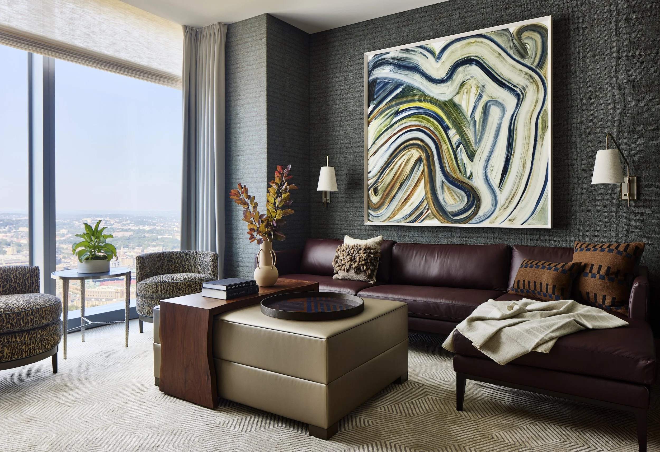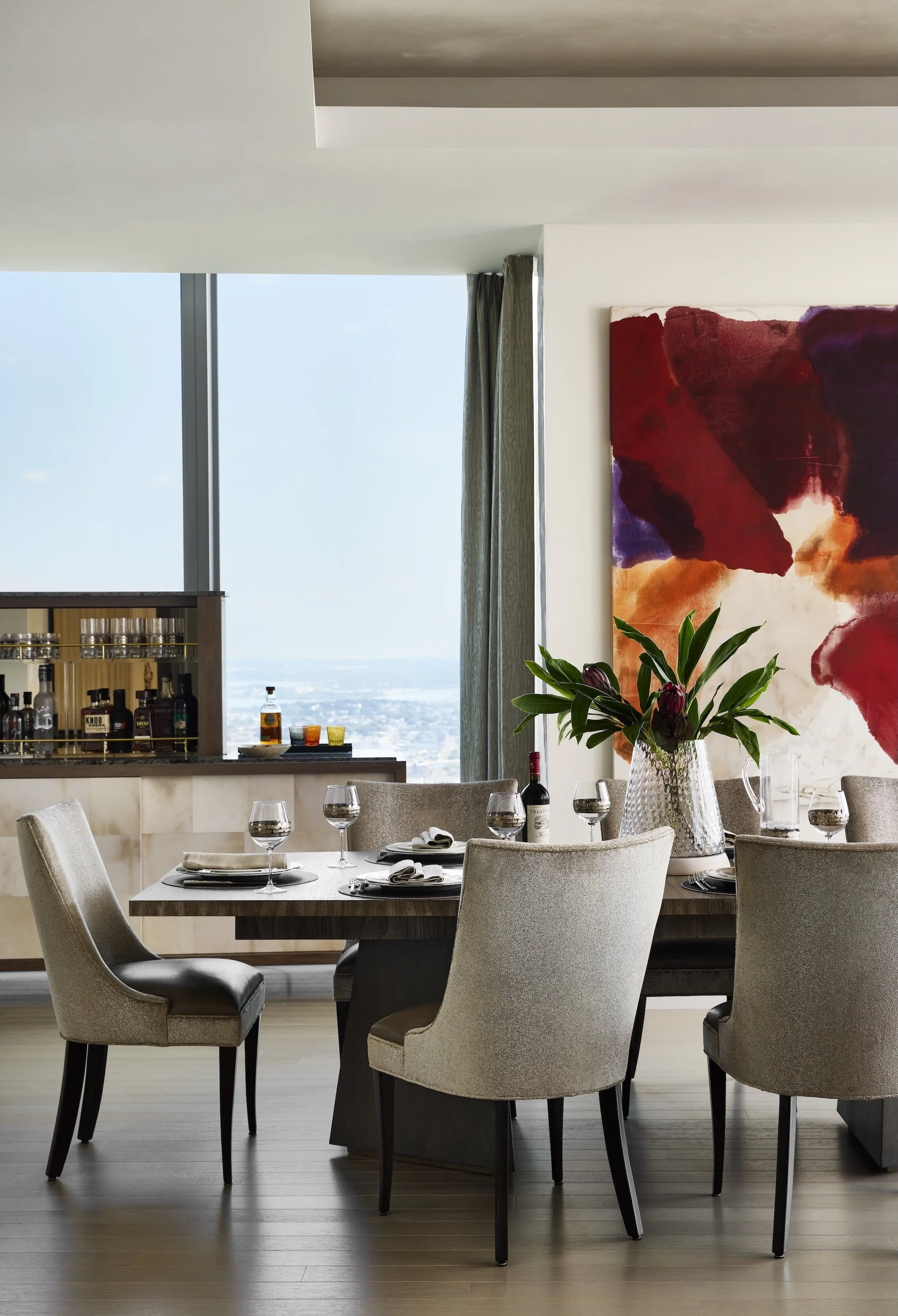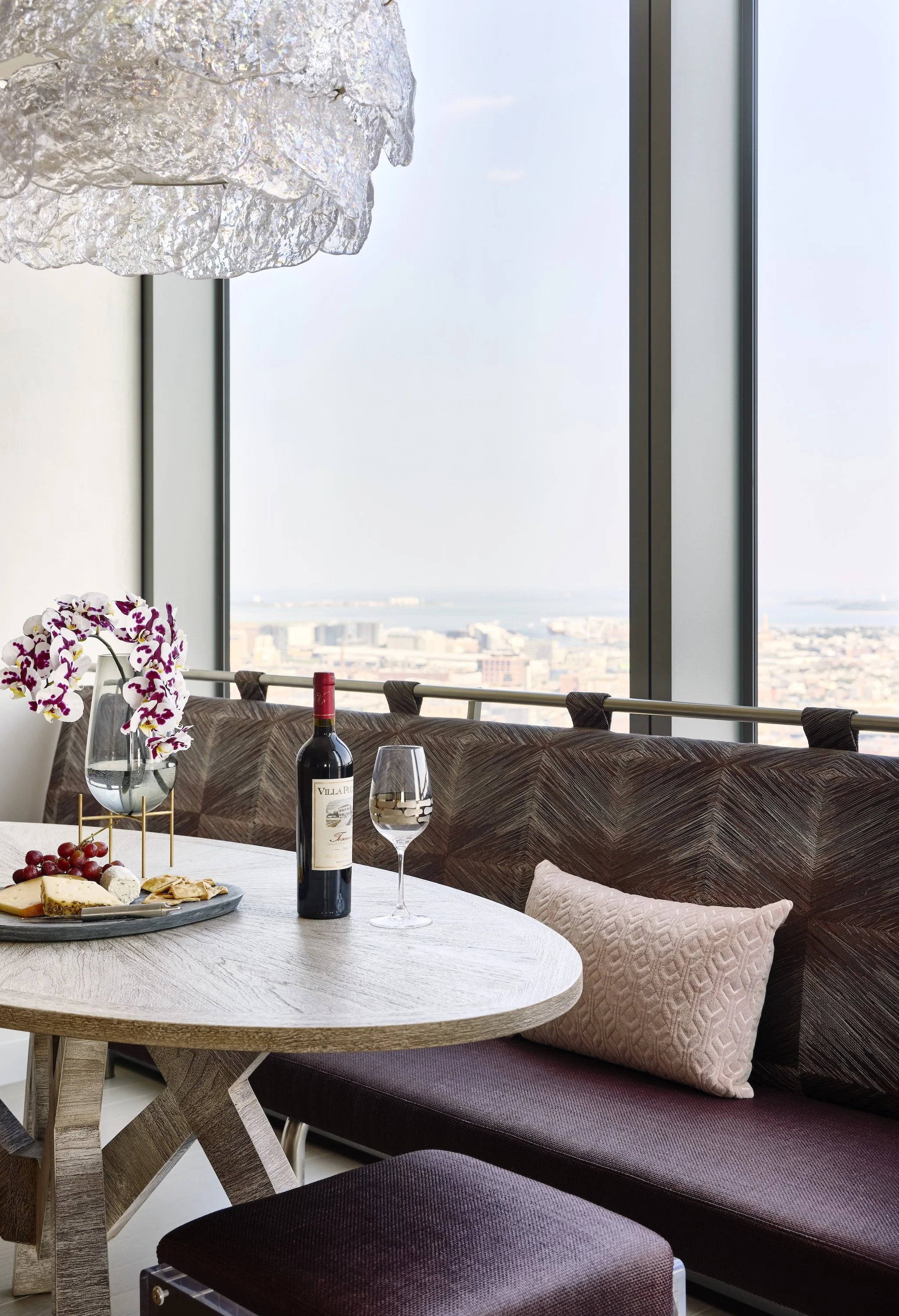 FIFTY STORIES ABOVE BOSTON WITHIN THE FOUR SEASONS PRIVATE RESIDENCES AT ONE DALTON, SWEEPING CITY VIEWS ARE BALANCED WITH WARM, INTIMATELY LAYERED INTERIORS. VENETIAN PLASTER, CUSTOM MILLWORK, AND SEMI-PRECIOUS STONE CREATE A HOME FULL OF TEXTURE AND THOUGHTFUL DETAIL.