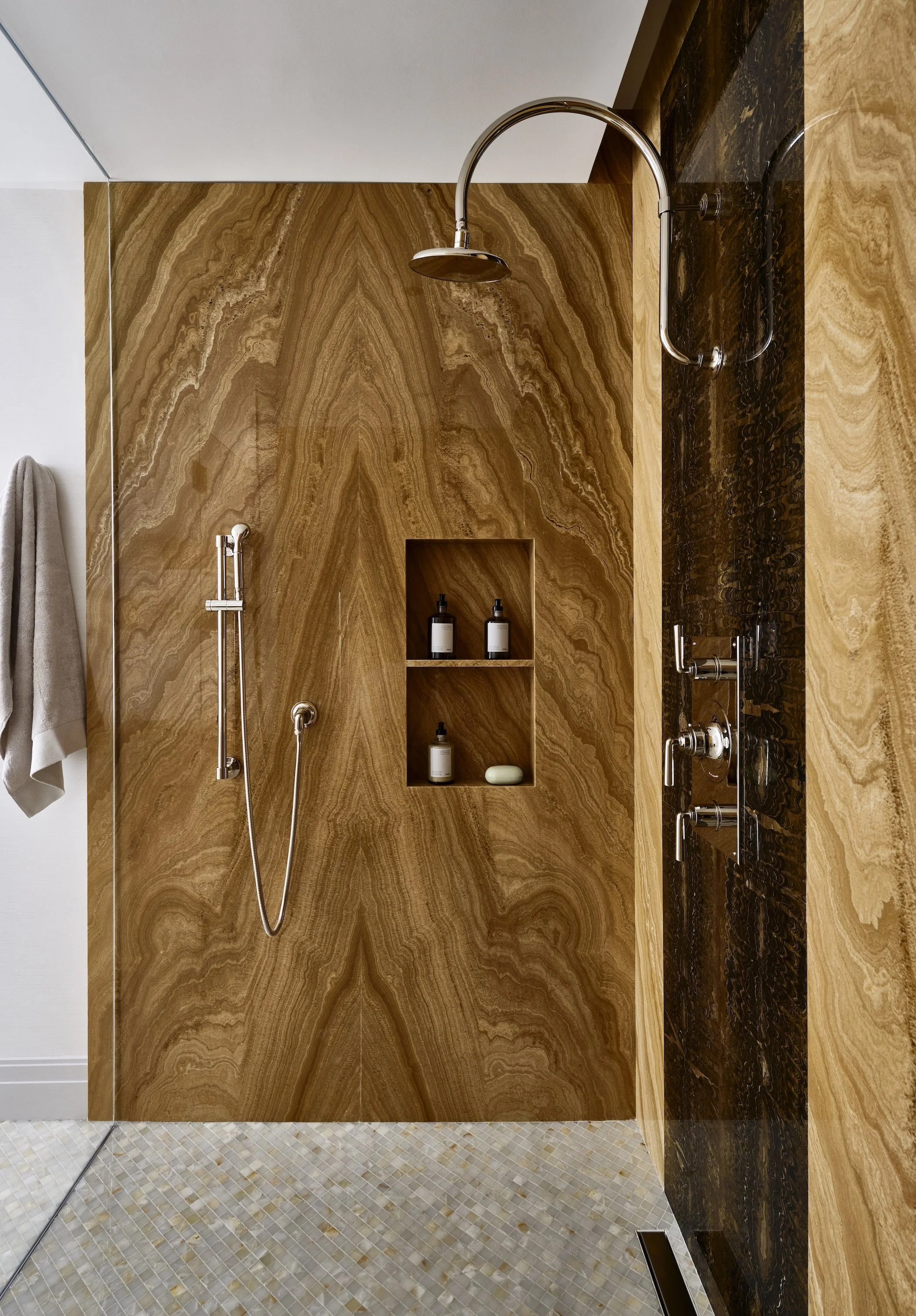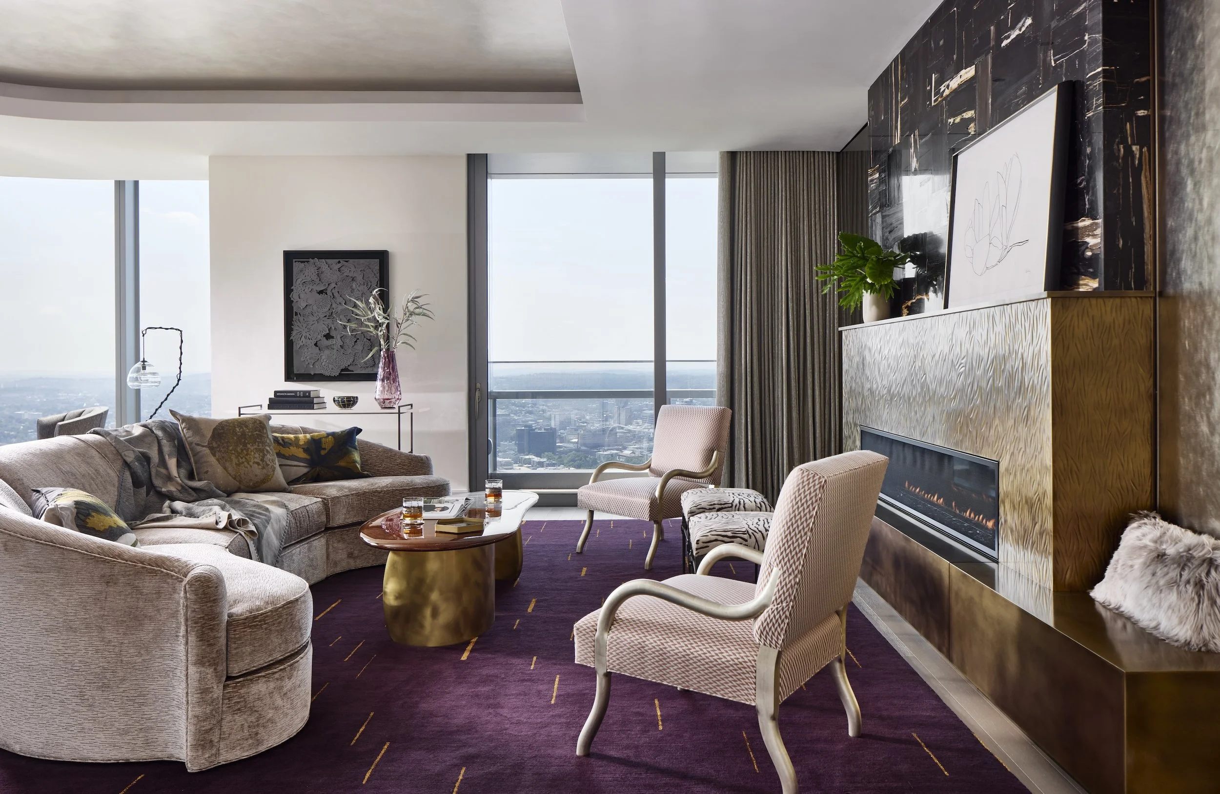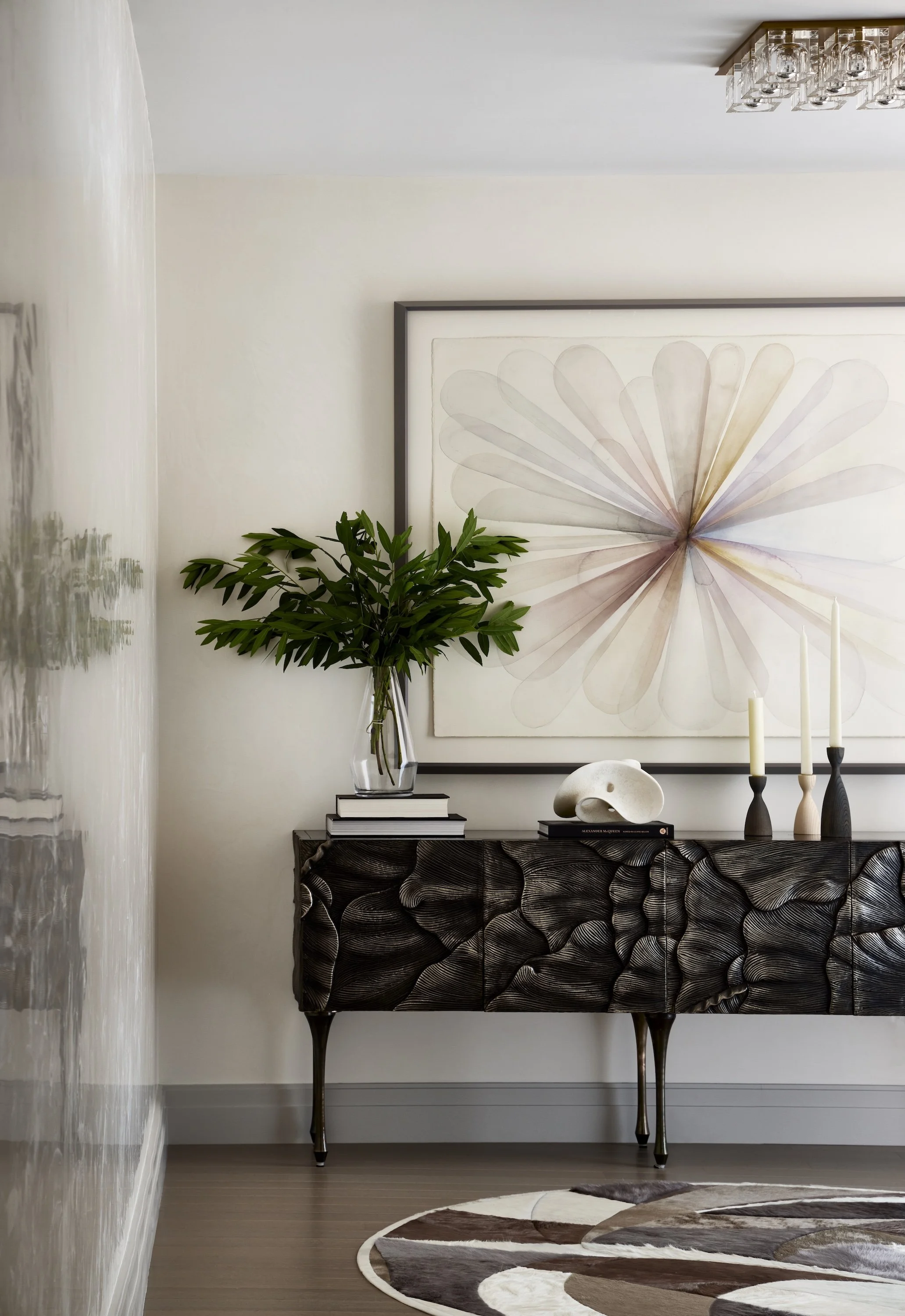 FIFTY STORIES ABOVE BOSTON WITHIN THE FOUR SEASONS PRIVATE RESIDENCES AT ONE DALTON, SWEEPING CITY VIEWS ARE BALANCED WITH WARM, INTIMATELY LAYERED INTERIORS. VENETIAN PLASTER, CUSTOM MILLWORK, AND SEMI-PRECIOUS STONE CREATE A HOME FULL OF TEXTURE AND THOUGHTFUL DETAIL.