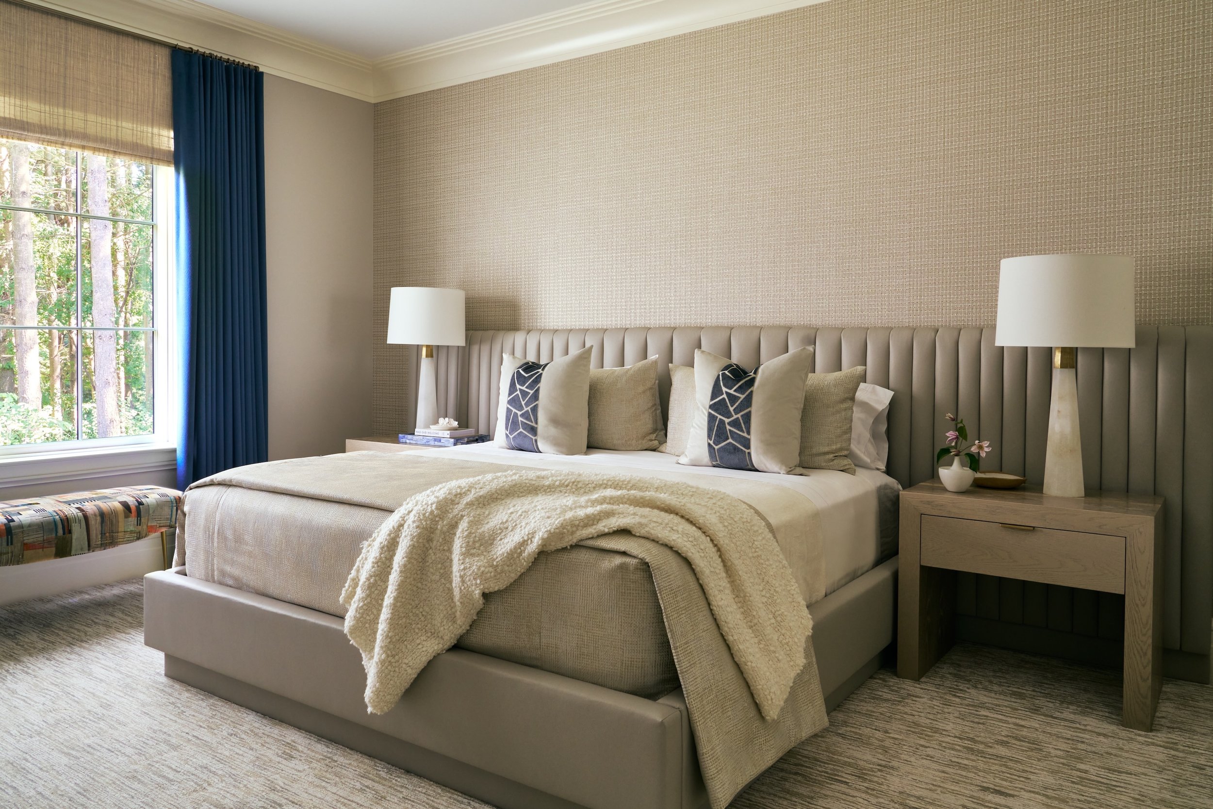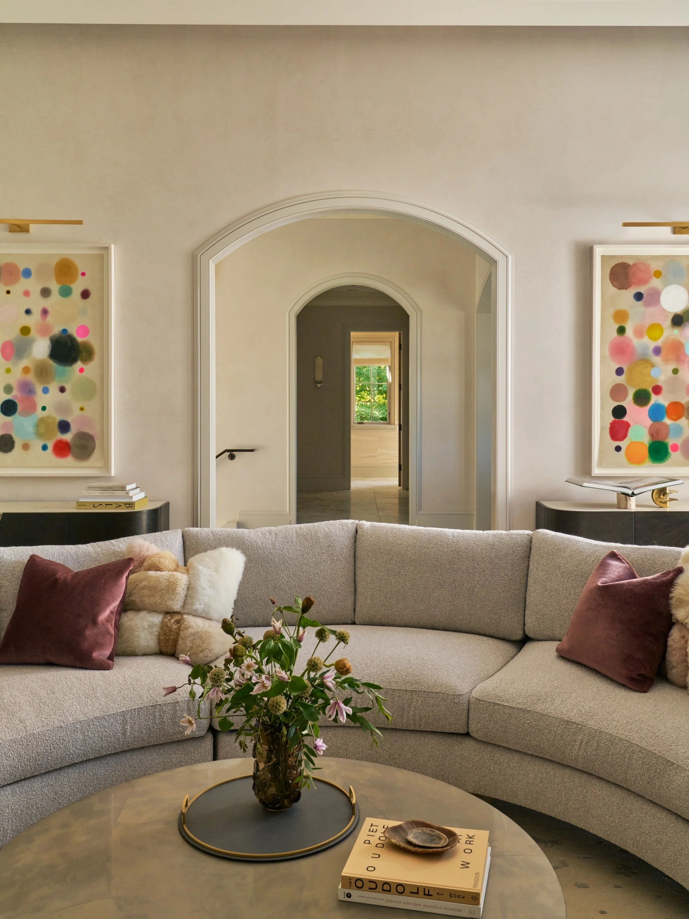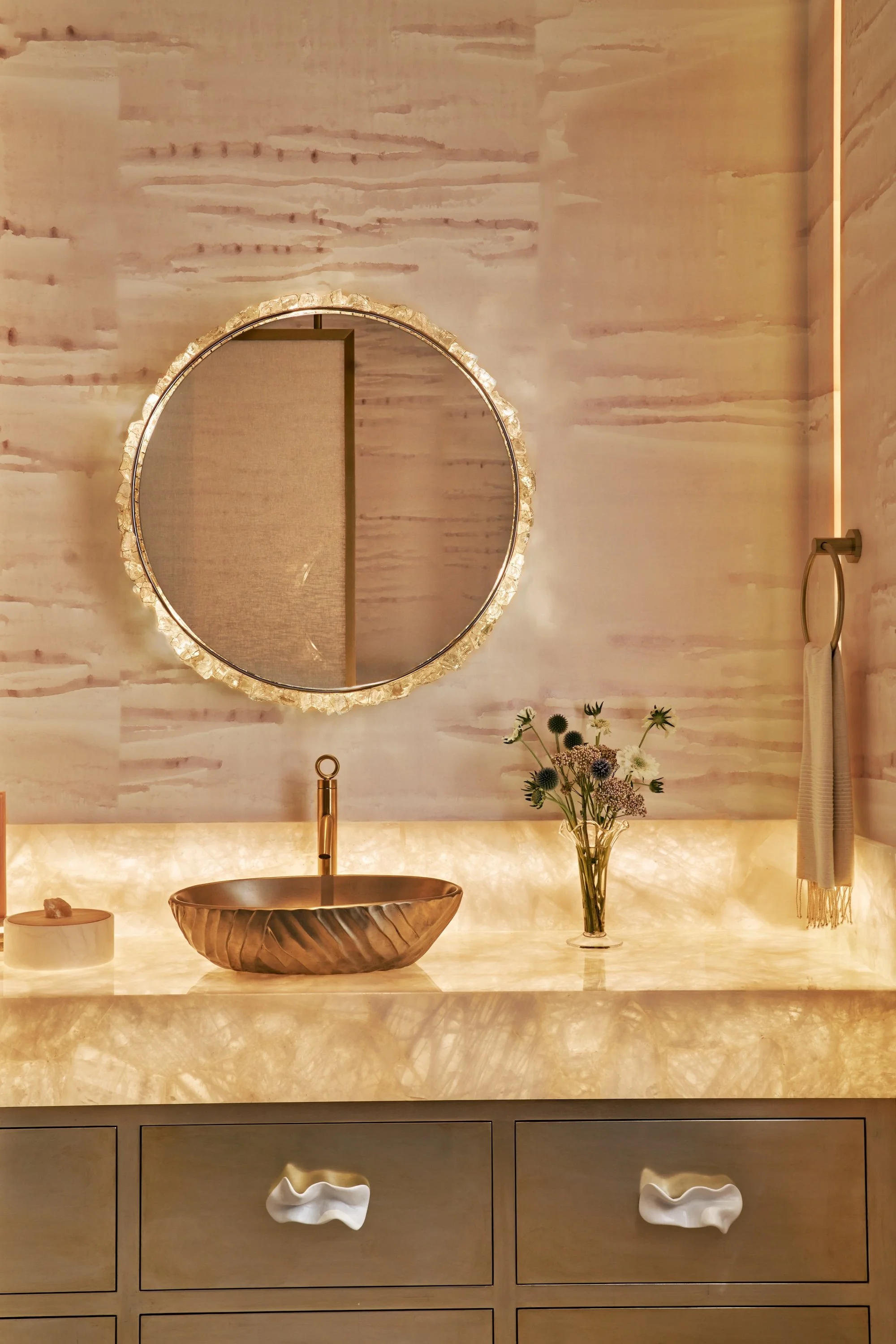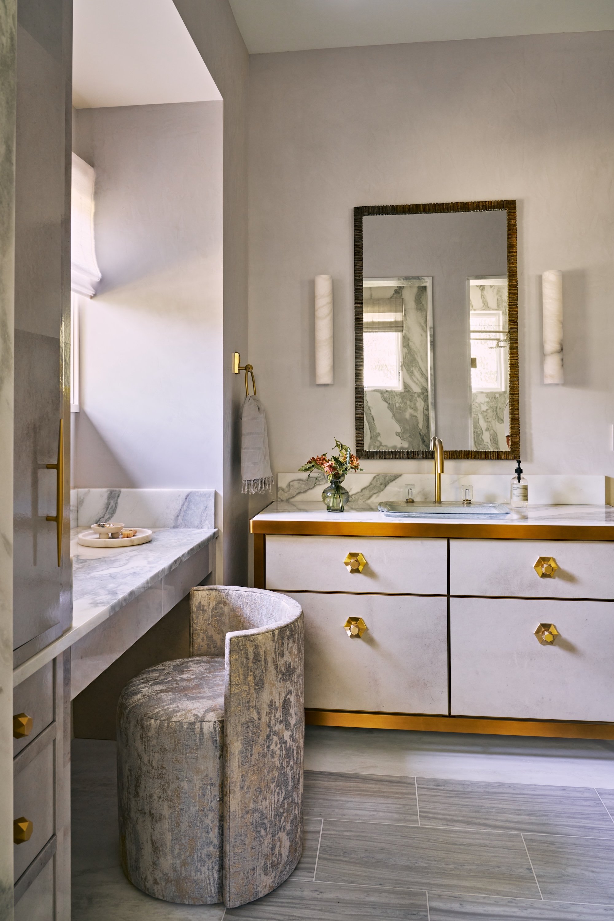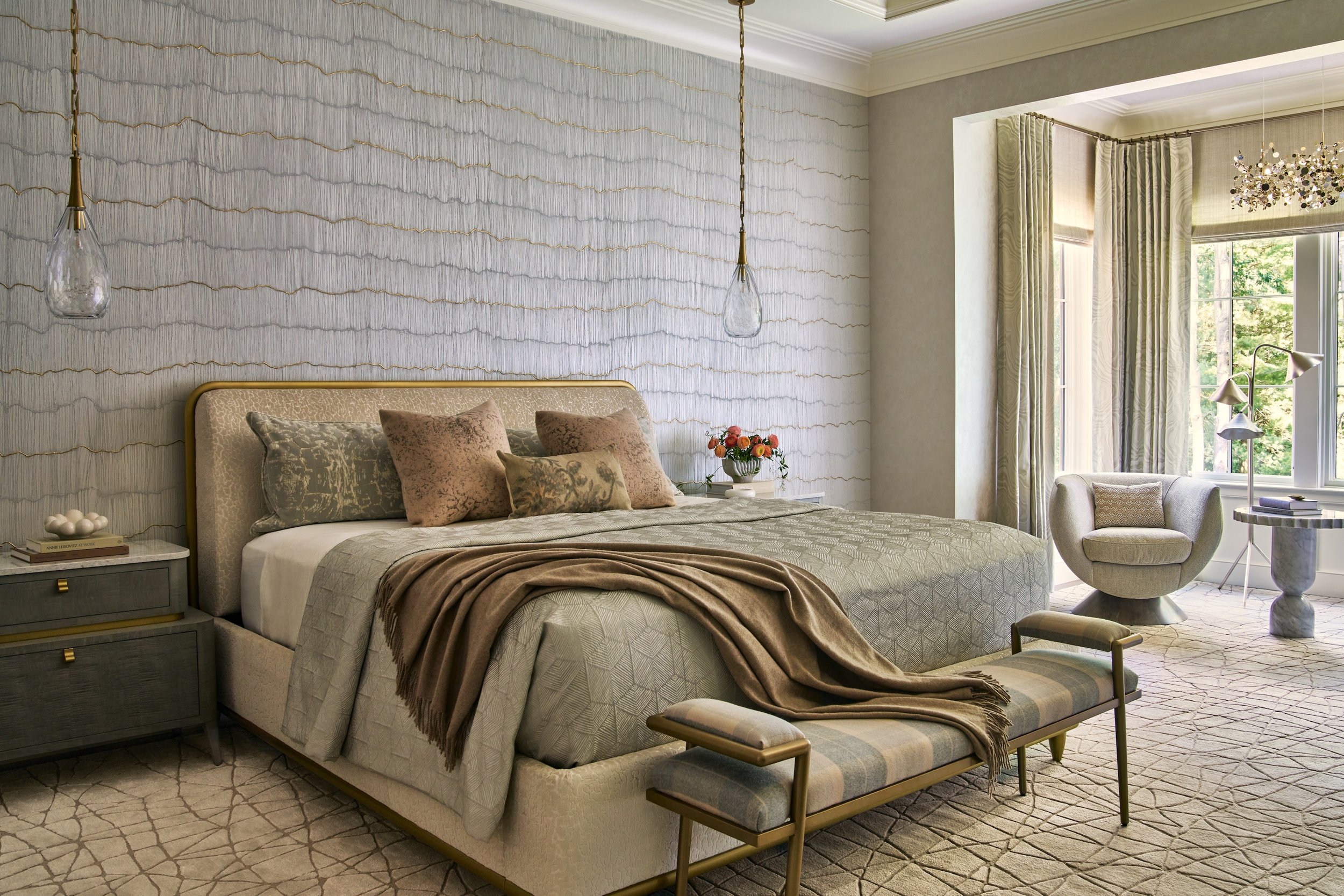 Bronze, marble, and fluted stone mark the architectural language—from the sculptural staircase to the fireplace and custom stone slab work—while layered woods and an entertainer’s lower level balance elegance with warmth and ease.