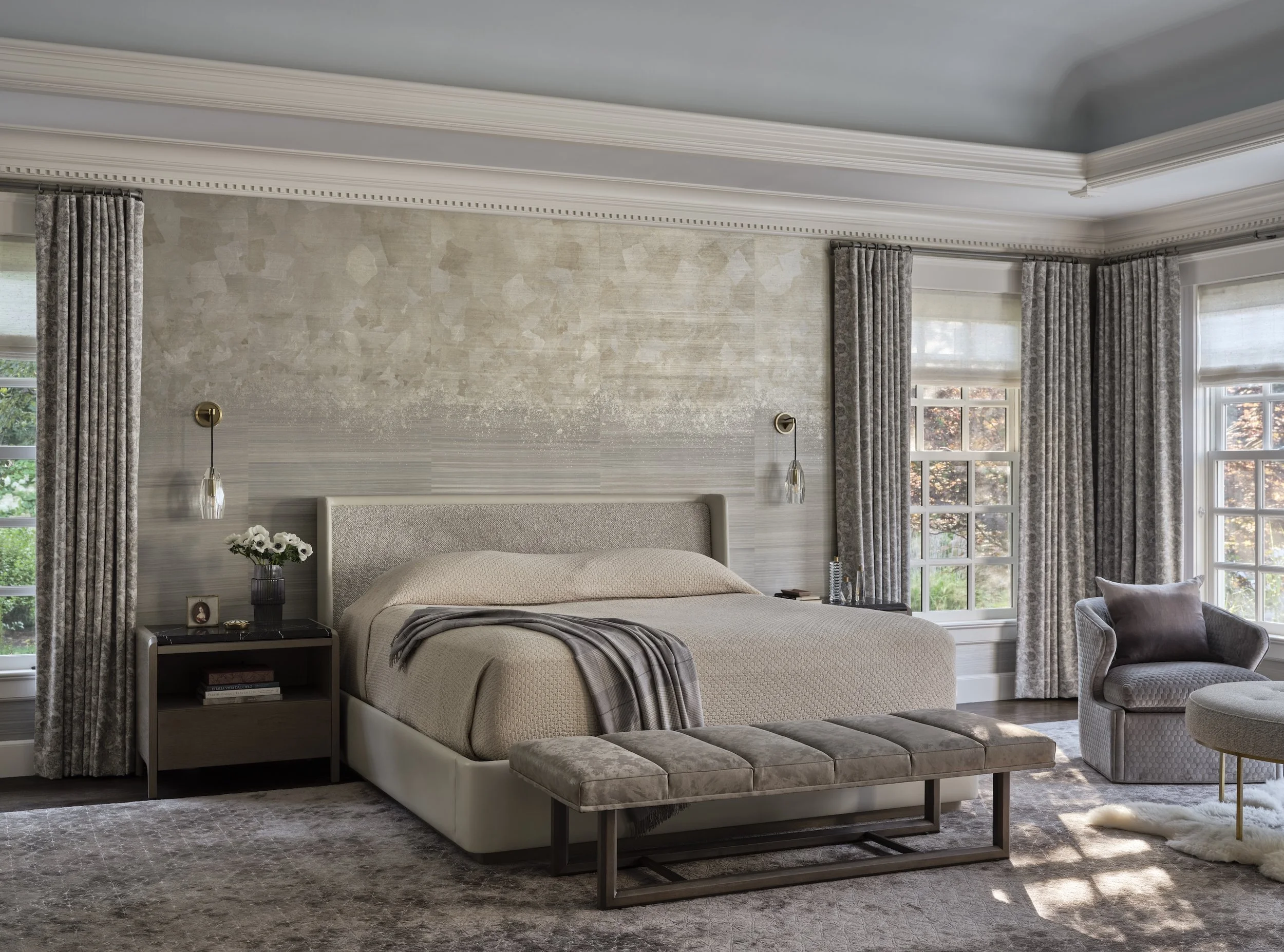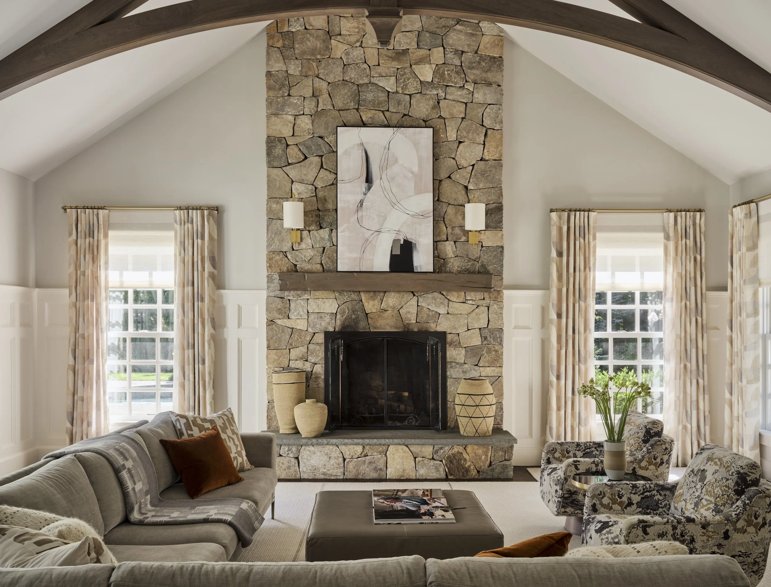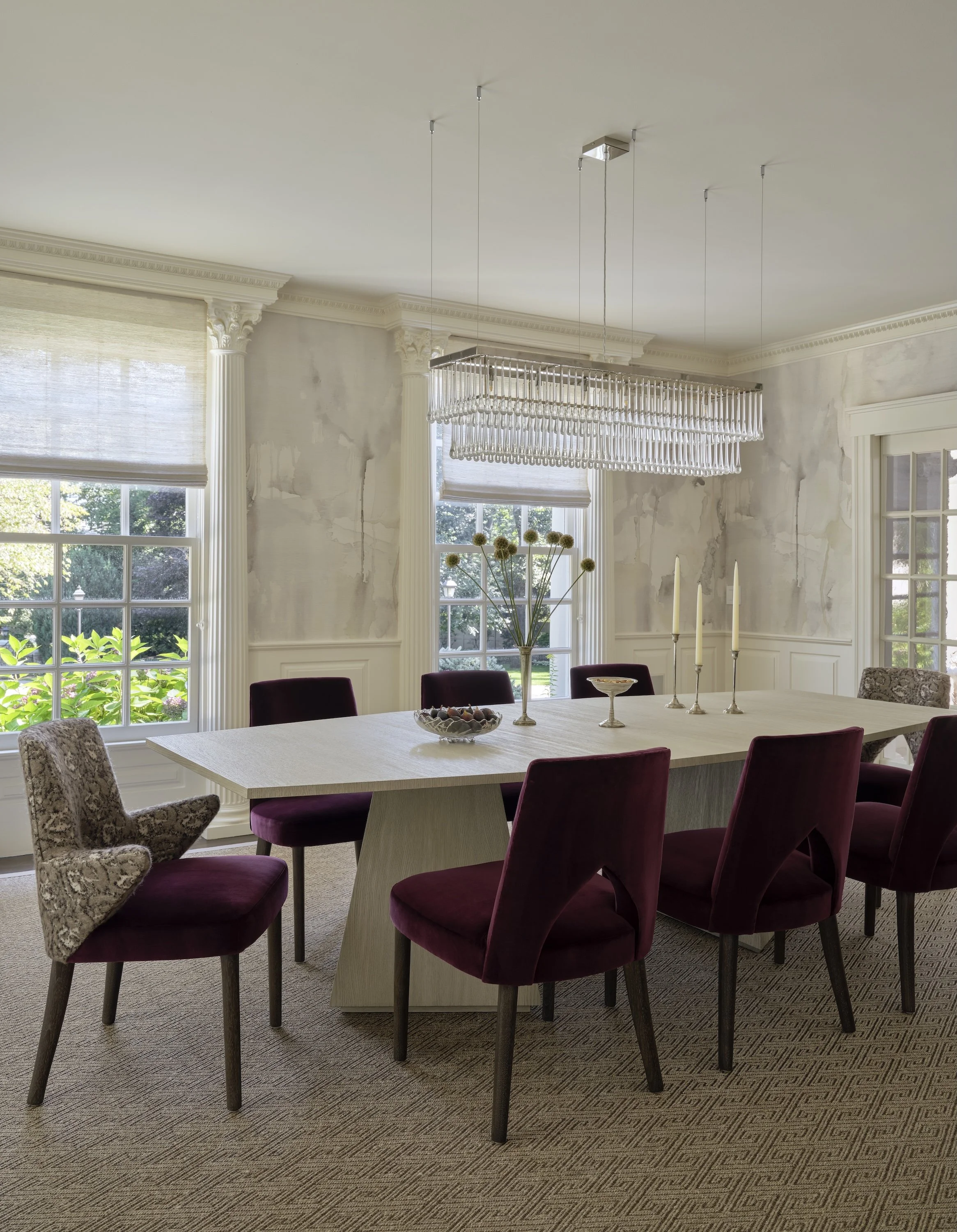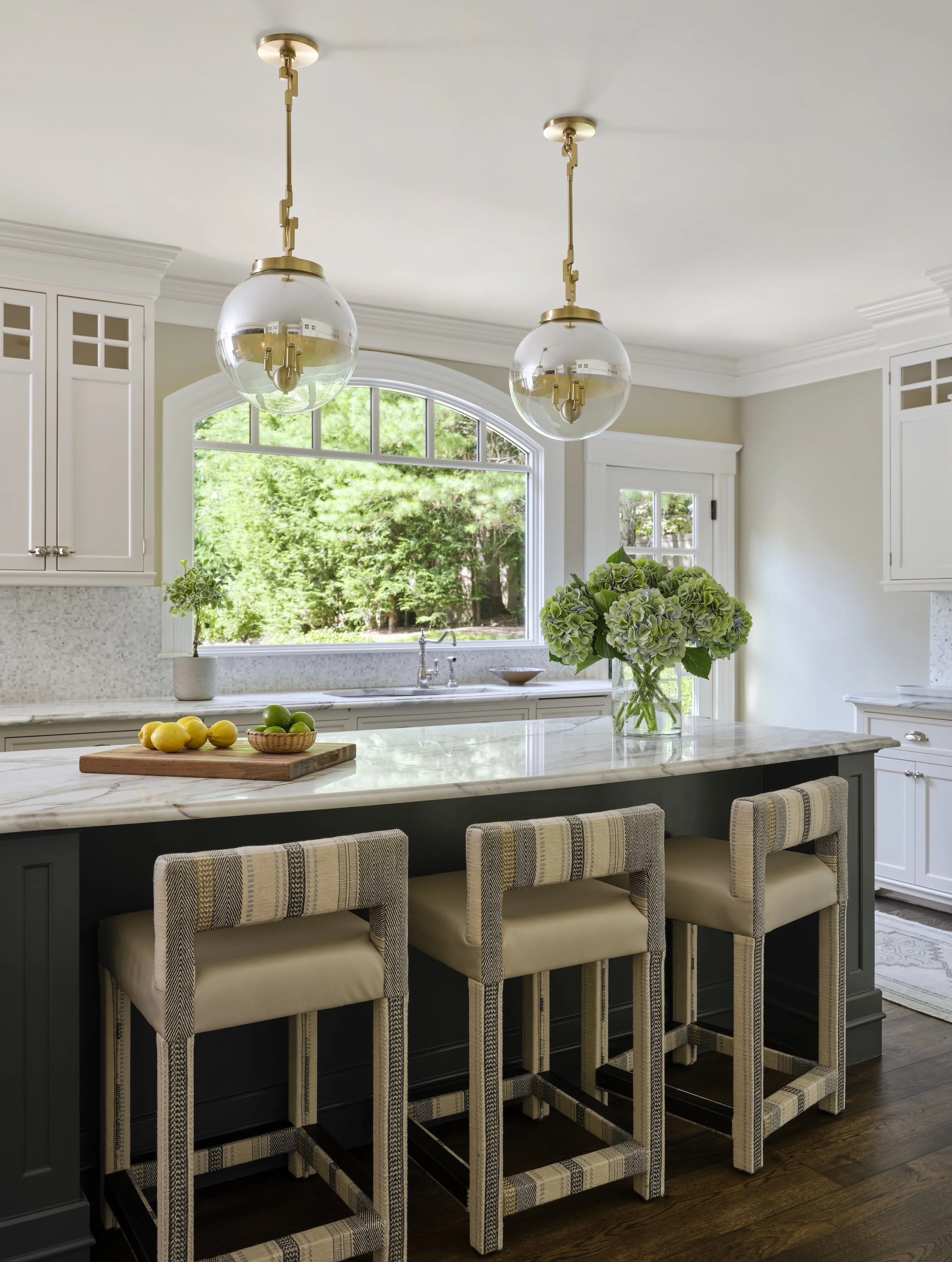 TRANSITIONAL FABRICS AND FINISHES MELD WITH TRADITIONAL ARCHITECTURE IN THIS SUDBURY, MA, RESIDENCE. REWORKED LAYOUTS AND CUSTOM MILLWORK SHOW HOW TARGETED ADJUSTMENTS CAN ELEVATE A HOME, BALANCING MODERN GLAMOUR WITH EVERYDAY LIVING.